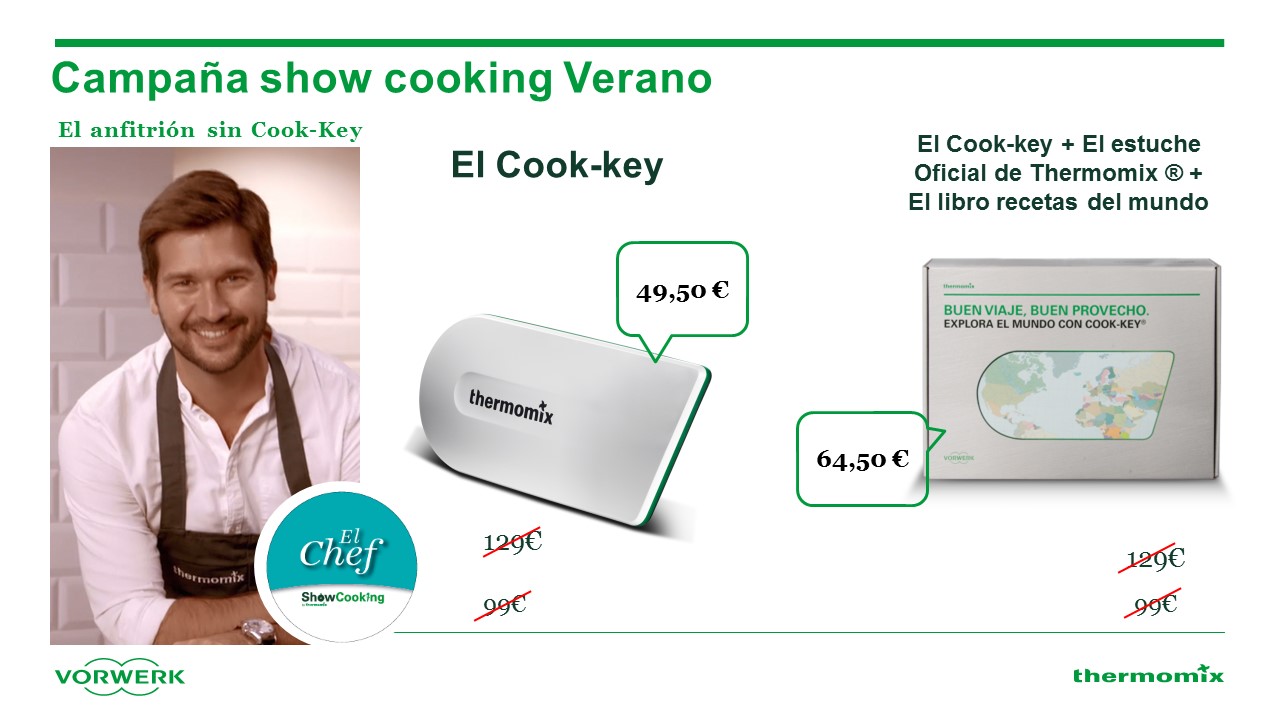 Y aun no tienes el cook-key pues es tu momento. Solo por breve tiempo los agentes comerciales cuando nos preparáis un show cooking .Además de aprender maravillosa recetas con dos o tres amigas te regalaremos una tarjeta descuento para ayudaros a tenerlo por solo 49 .50 o 64,50 (cook .key con estuche y libro de recetas del mundo) normalmente vale 129 o 99 . según el caso. Pinsa en tres amigas que quieran pasar un buen rato y ponte en contacto Y DISFRUTA DE TU COOK-KEY