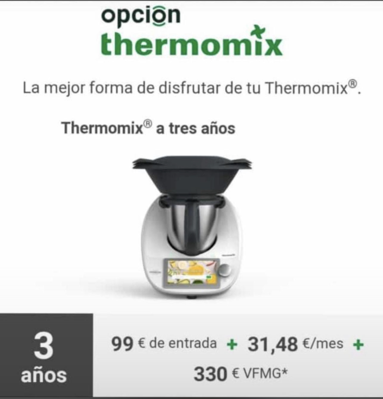 Escoge nuestro producto Opcion THERMOMIX®️, con tres años de garantía y de REGALO 12 meses de acceso al mayor libro de recetas del mundo.