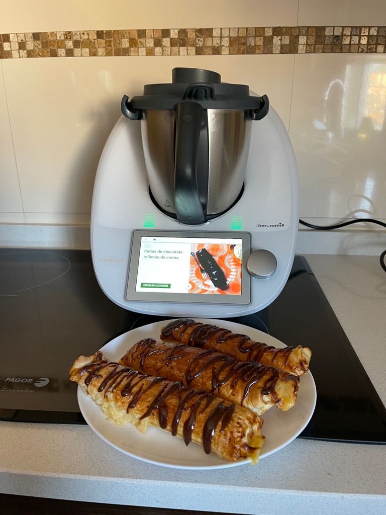 Mira la receta tan deliciosa que he encontrado en Cookidoo®: Cañas de chocolate rellenas de crema https://cookidoo.es/recipes/recipe/es-ES/r627572