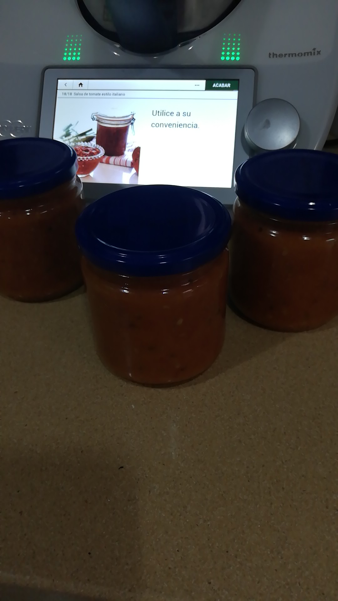 Ponemos la sal, el azúcar, la pimienta y el orégano junto con los tomates partidos, cerramos la tapa, ponemos la rejilla anti salpicaduras o cestillo encima de la tapa para que no salpique el tomate 30mn 120'vel 1
